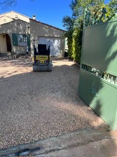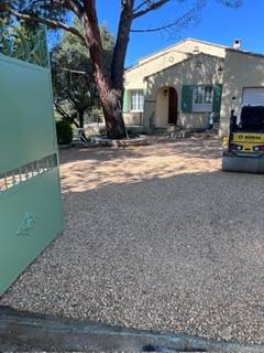 Nous avons utilisé un gravier jaune ocre décoratif, idéal pour apporter une touche chaleureuse et naturelle à vos extérieurs ????☀️